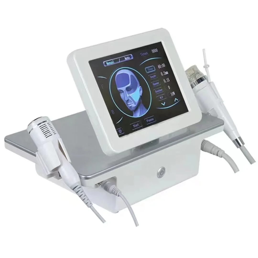 El equipo Radiofrecuencia Fraccionada con Microagujas y Martillo Frío 2 en 1 es una solución avanzada para tratamientos estéticos faciales y corporales, diseñado para lograr un rejuvenecimiento integral de la piel con resultados visibles, seguros y mínimamente invasivos.