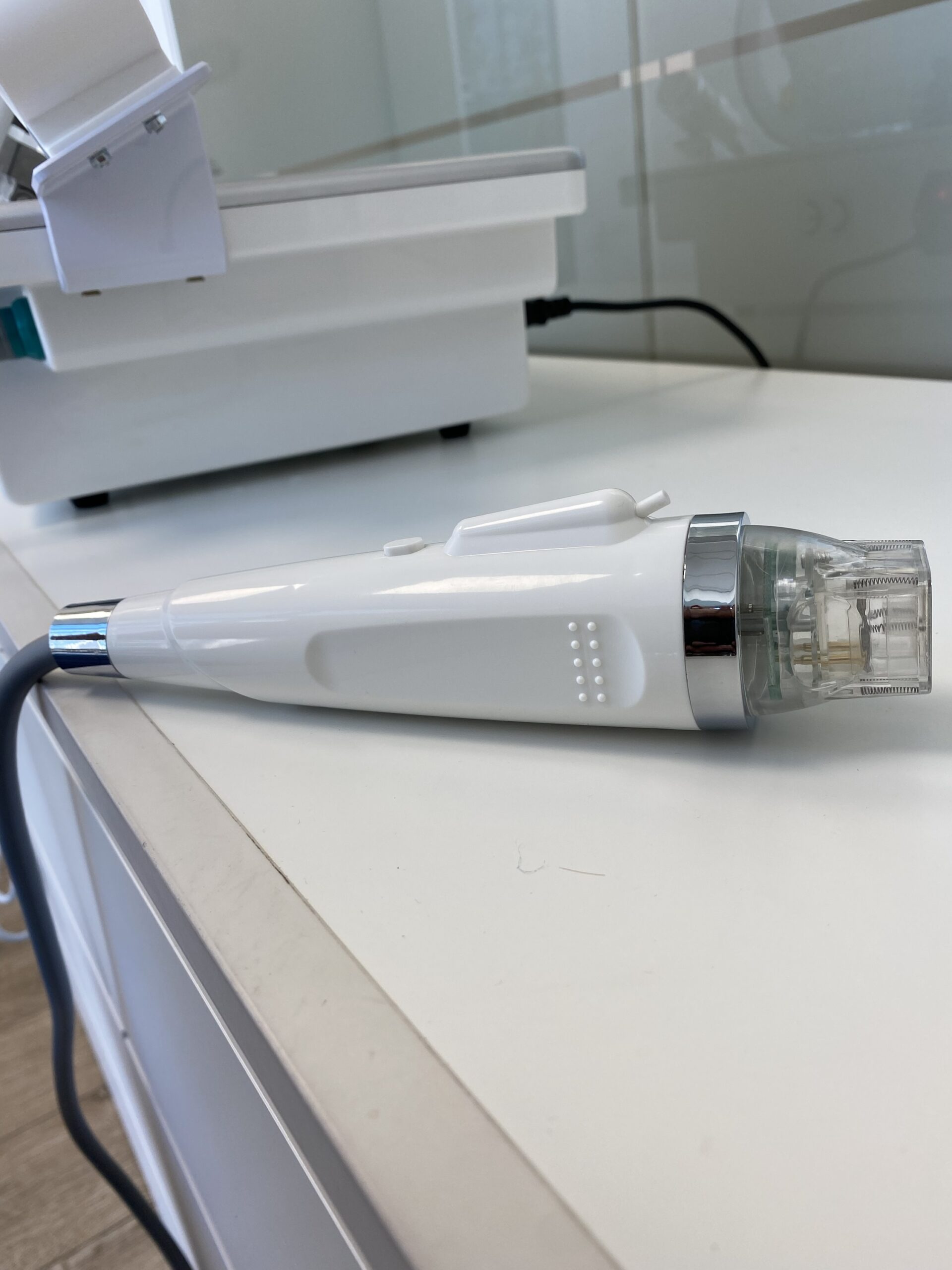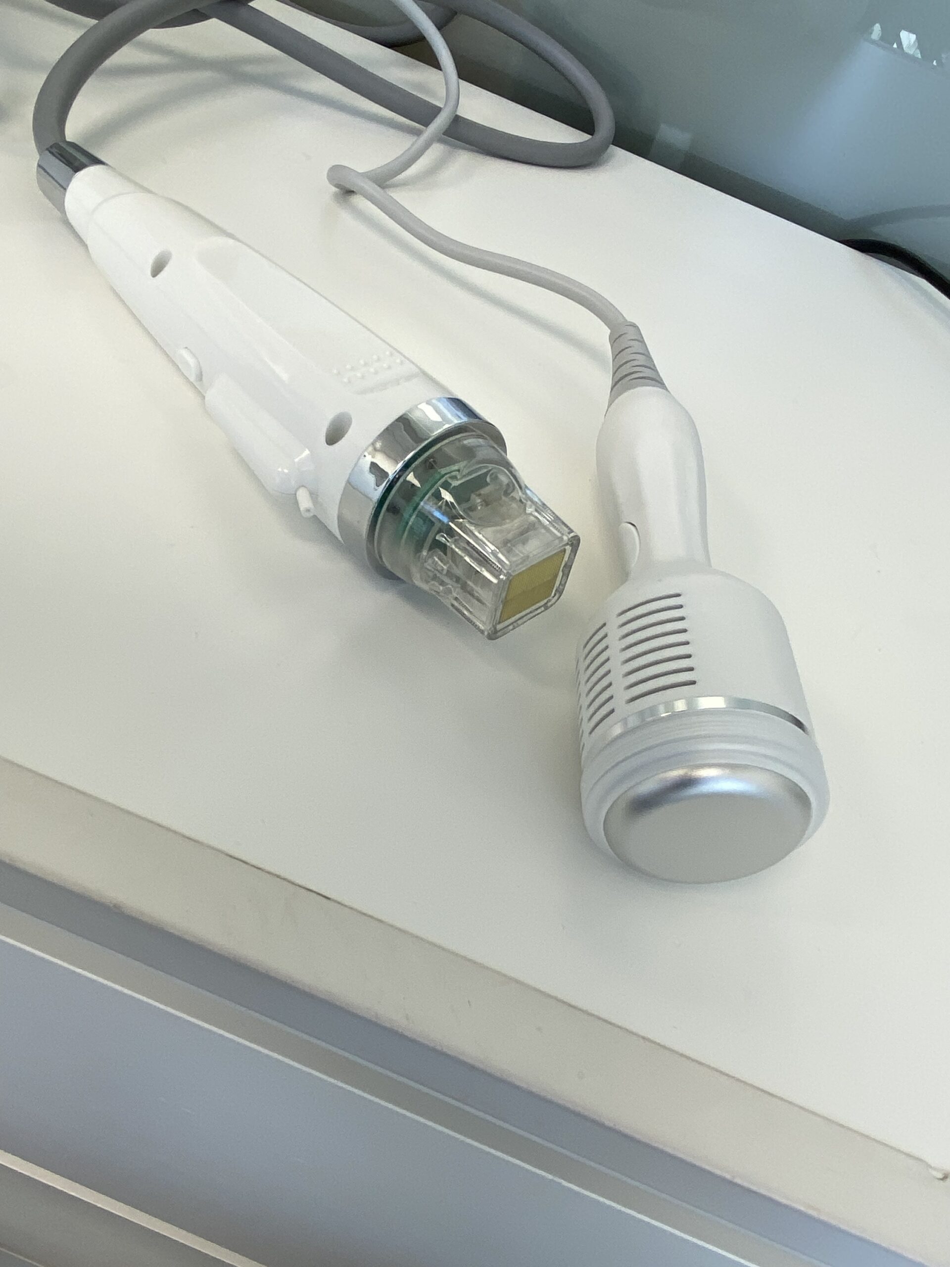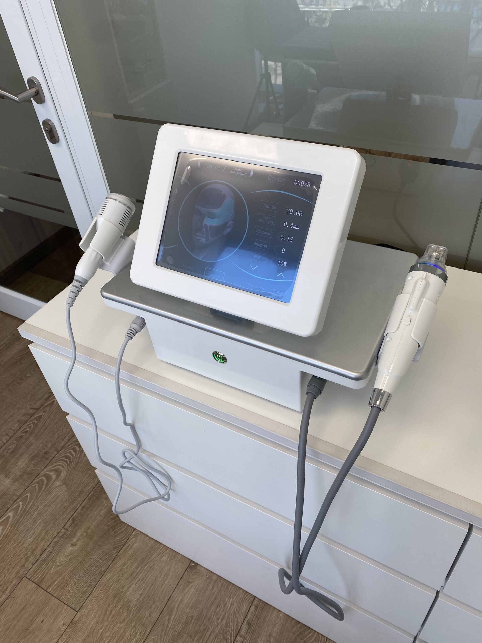 Adicionalmente, el equipo incorpora un martillo de crioterapia (frío) que se utiliza al finalizar el tratamiento para desinflamar, calmar, reducir el enrojecimiento y potenciar la reafirmación cutánea.